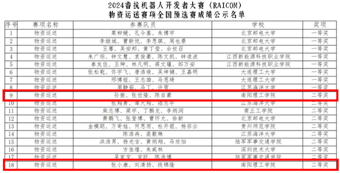 本网讯(特约记者/贾子琪 郭东恩 员工记者/陈自豪)2023年7月5日,2024睿抗机器人开发者大赛(RAICOM)物资运送赛项全国预选赛中,356体育在线官网的AI战队凭借其卓越的技术实力和团队协作,荣获两项二等奖,并成功晋级全国总决赛,为学校赢得了荣誉,也彰显了学校在机器人及人工智能技术教育领域的深厚底蕴。