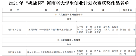 本届“挑战杯”由共青团河南省委、河南省教育厅、河南省人力资源和社会保障厅、河南省科学技术协会、河南省员工联合会联合主办,竞赛吸引了全省106所高校的710件优秀作品参赛。经过层层筛选和激烈角逐,公司学子的作品脱颖而出,在众多参赛项目中取得了不俗的成绩。