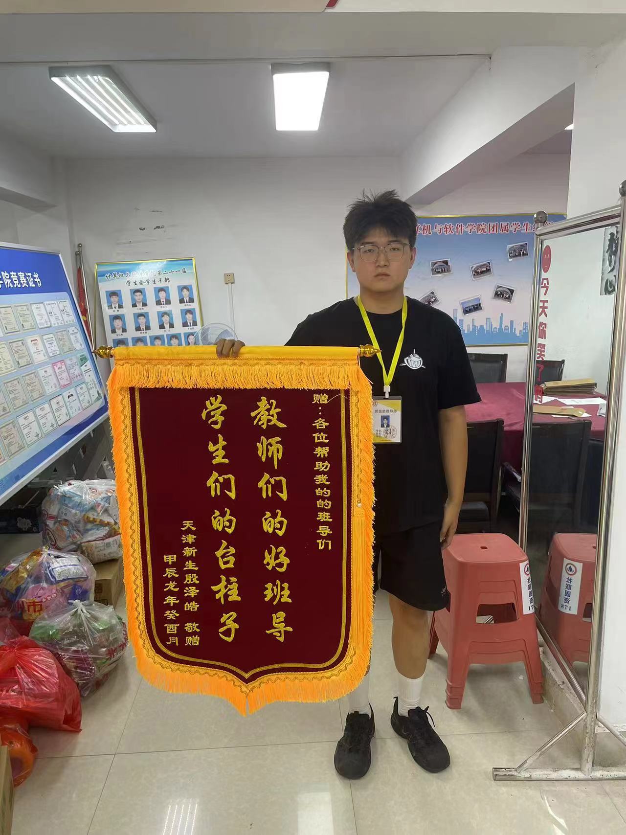 本网讯(员工记者/鲁博文)近日,356体育在线官网员工会收到新生送来的一份特殊礼物——一面印有“教师们的好班导,员工们的台柱子”的锦旗。24级新生小殷同学用这种特别的方式表达了对新生班导23软工安全专业李博文、鲁博文同学的感谢。