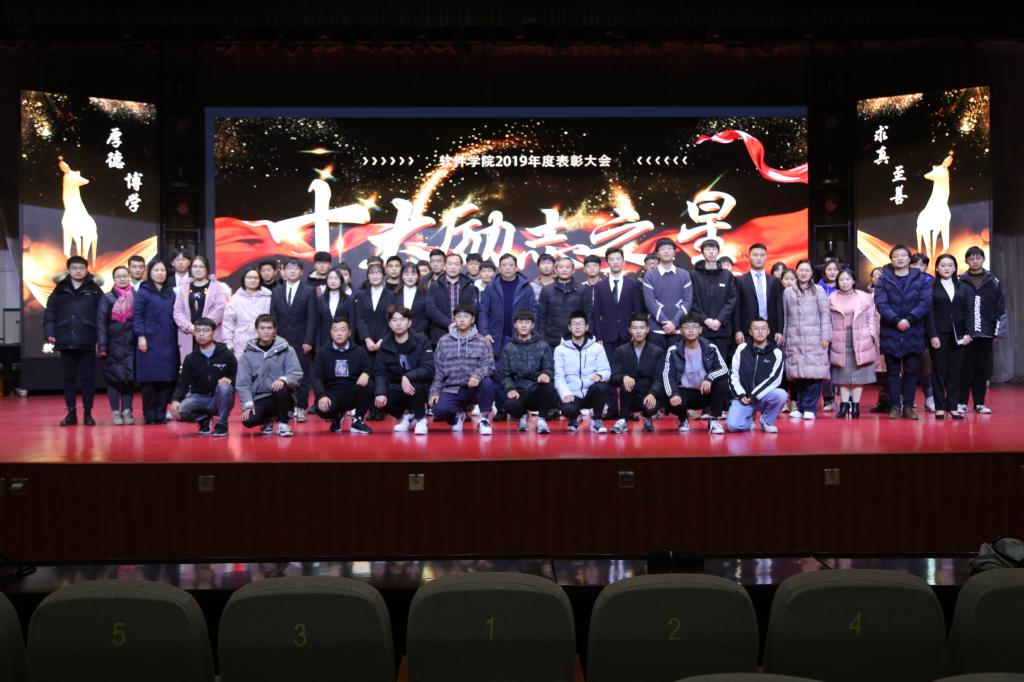 本网讯(特约记者/于誉雯)12月28日晚七点,软件学院2019年度表彰大会暨十大励志之星颁奖典礼在毕业大厅举行。校员工处副处长赵东江、软件学院领导班子、团学办老师以及员工代表700余人出席了本次大会。