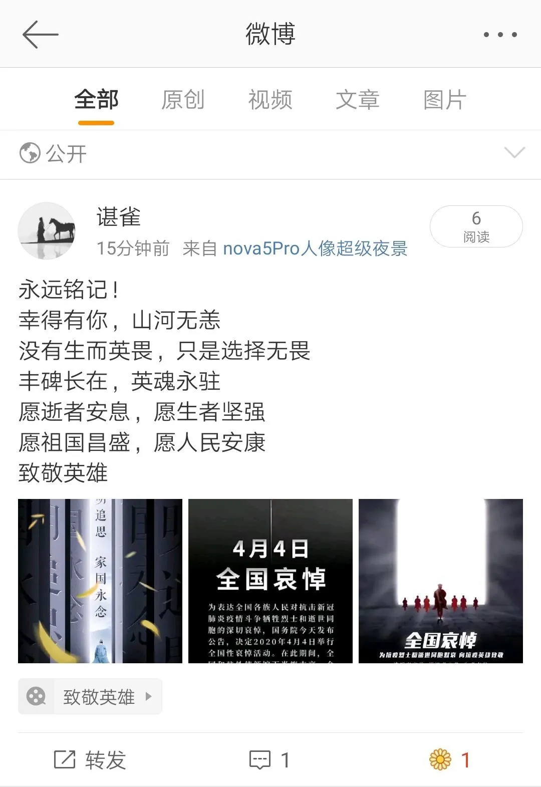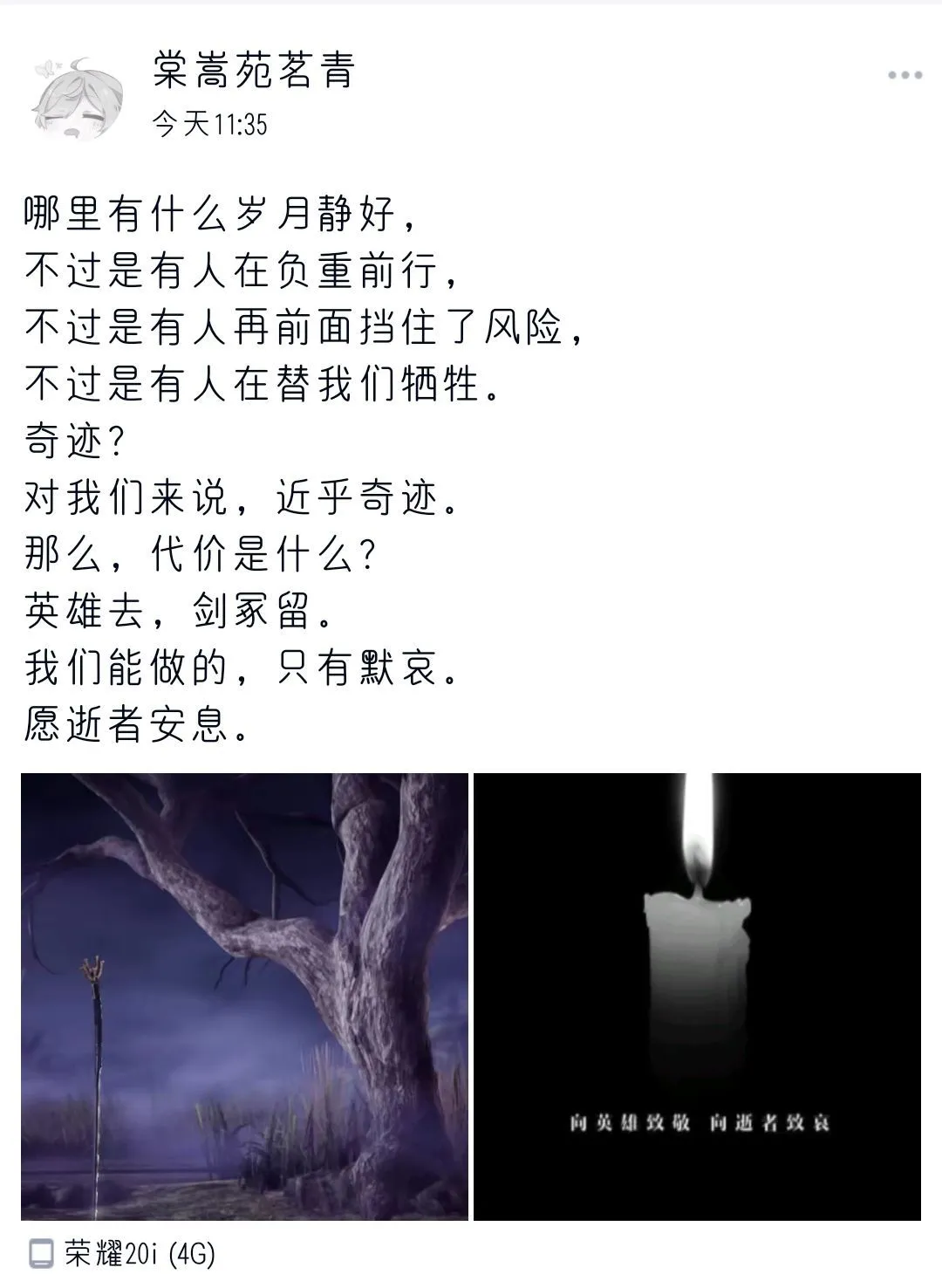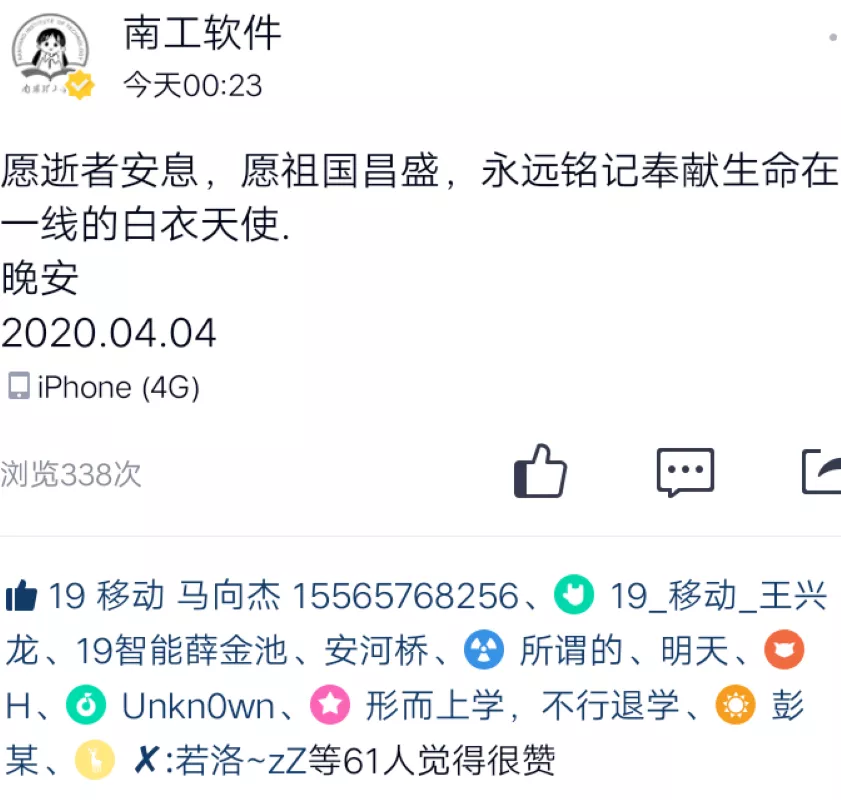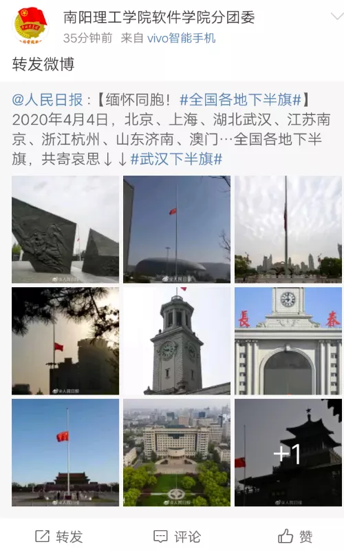 软件学院各个官方账号也对逝去的英雄和同胞进行缅怀。