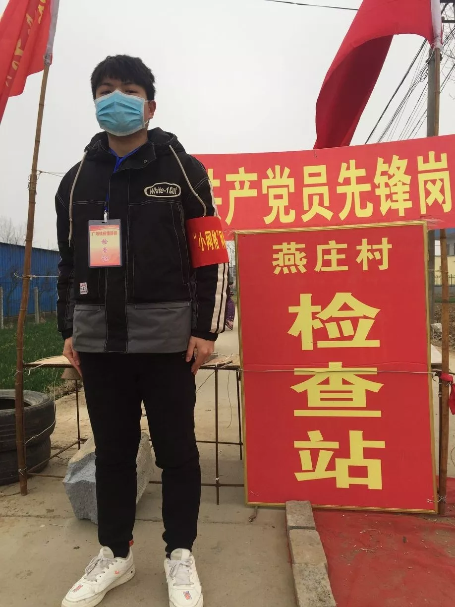 17级Java2班员工周苇邦在河南省信阳市固始县陈淋子联合村参与防疫工作。