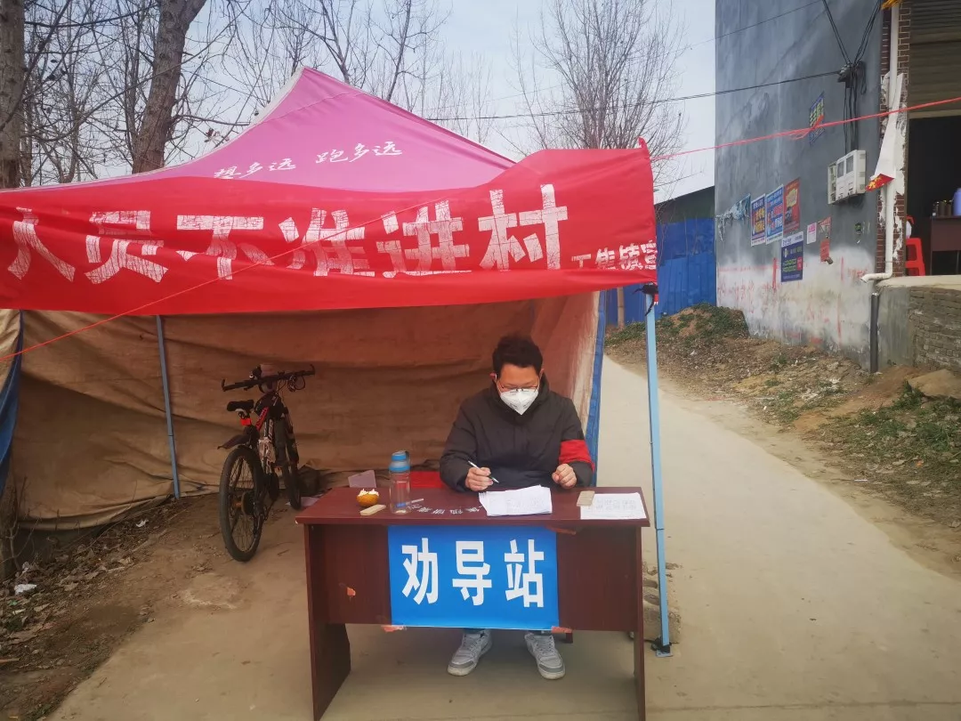 17级java1班员工张阳在新野县南关一队执勤点参与防疫工作。