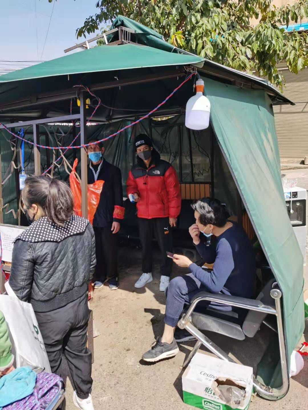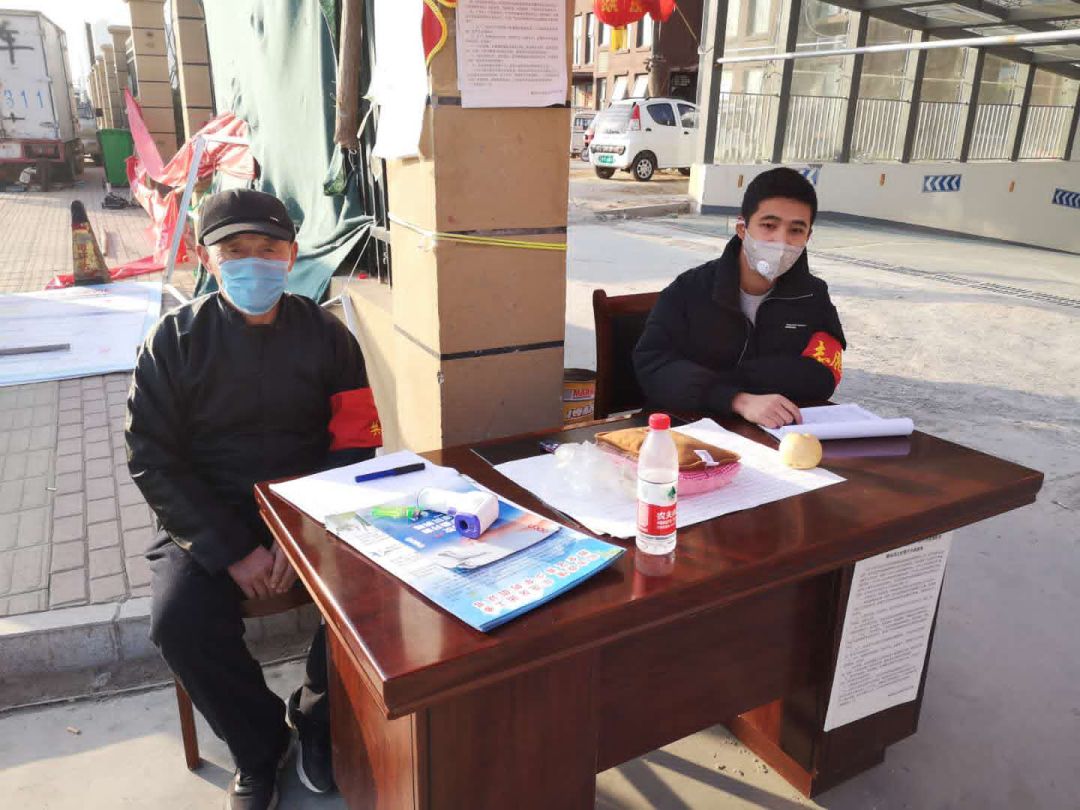 19级渗透一班 杨国煊同学(右一)响应号召在镇平涅阳街道办事处大世界社区执勤点做志愿者,对进出人员进行核查登记。展现当代老员工使命担当,为疫情阻击战贡献青春力量!