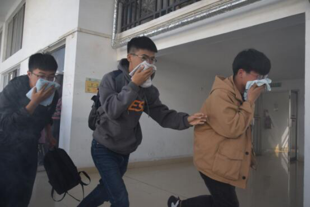 演练伊始,楼道里冒起浓烟,随着火警警报的响起,员工们用湿毛巾捂住口鼻,分批次从两个逃生通道有序逃生,并在指定地点集合,各班班长清点逃生人数,确保所有人员平安逃离“火灾现场”。
