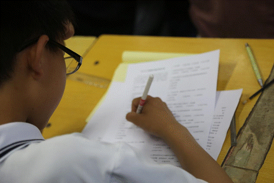 图为孩子们认真填写调查问卷 中国青年网通讯员 楚英都 摄