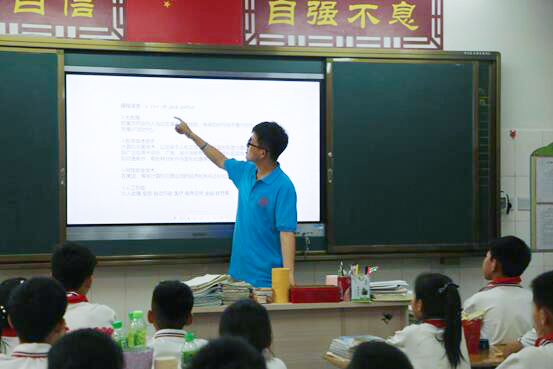 队员们利用自身所学的知识,简单地给小孩子们讲解编程的历史,5G的发展以及当今发展的国际形式。众所周知,编程较为抽象,不太容易理解。但是队员们通过列举生活中常见的实物,以一种更习以为常的方式展现出来。孩子们紧跟讲解思路,还时不时举手提出问题。队员们耐心解答,他们在明白之后露出了满意的笑容。课程结束后,小朋友们还纷纷围着实践的队员,争先恐后地提问,想要了解更多的内容。这次课程讲解,让孩子们接触到了平常接触不到的知识,开阔了他们的视野,培养了大家的兴趣。