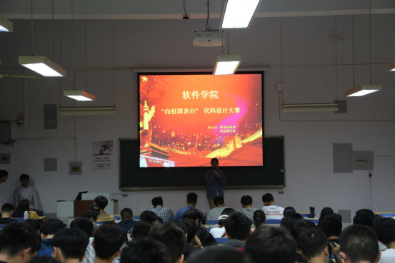 本网讯(员工记者/李森)5月28日晚,软件学院于14#104教室成功举行主题为“向祖国表白”的代码设计大赛决赛。共有17组选手进入决赛,本次比赛软件学院各社团社长担任评委。