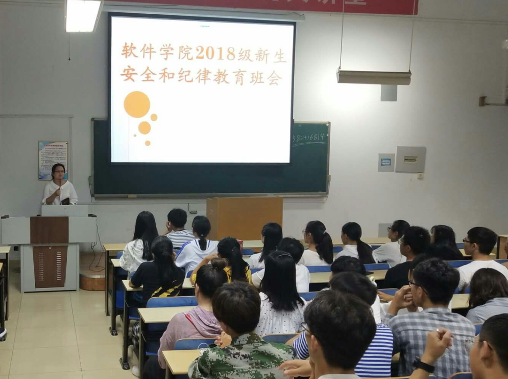 9月15日晚七点,软件学院举办以“纪律教育,安全教育”为主题的班会,2018级新生参与了此次班会。