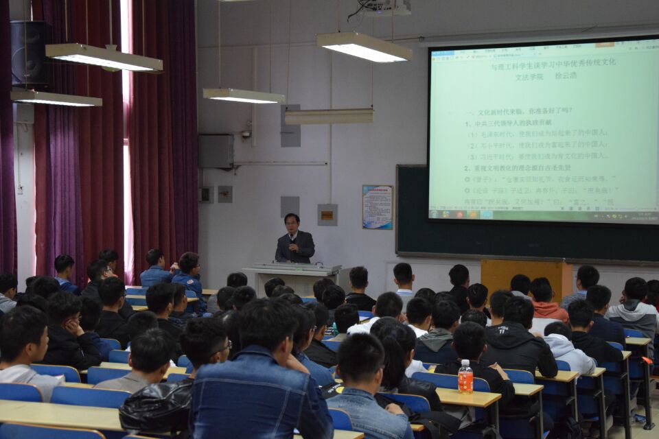 徐教授通过历史故事、生动案例、影音资料等方式与同学们畅谈了中华文明的优秀传统文化对一个人道德品行塑造的影响,他指出文化就是“以文化人”,高尚的道德并不是要做出什么惊天动地的事情,而往往是表现在日常的行为习惯中。如在待人接物中做到“温、良、恭、俭、让”,在处理人际关系时要“恭、宽、信、敏、惠”。我们播下一个行动,便收获一个习惯;播下一个习惯,便收获一个品格;作为新时代的老员工,应时时刻刻与礼貌交谈,千万不要把行为习惯看作小事。“不知礼,无以立也,不知言,无以知人也”。每个人的举手投足之间都传递着丰富的信息,让我们从此刻做起,从自我做起,从点点滴滴的小事做起,养成良好的道德习惯。最后,徐教授还建议同学们读一读中国推荐给联合国的十本书,《诗经》,《论语》,《孟子》,《老子》,《庄子》以及《史记》,《全唐诗》,《红楼梦》,《鲁迅全集》等,还有南阳人的骄傲大哲学家冯友兰的《中国哲学史》。