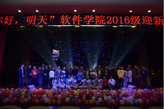 本网讯(员工记者/周傲如 李珊 陈招阳)10月23日,以“你好,明天”为主题的2016级软件学院迎新晚会于毕业大厅隆重举行。356体育在线官网团委书记康磊,心理健康教育中心主任赵卫平,团委副书记郭兴华,软件学院全体领导班子及部分老师出席晚会。