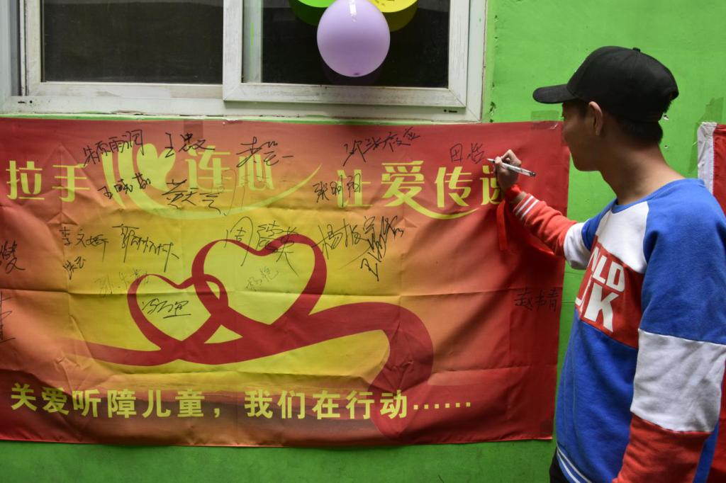 据聋康学校的苗经理介绍学校里共有30多名先天性听障的孩子,学校里很多老师都是南阳义工协会的志愿者,经常有爱心企业和爱心人士为孩子们奉献爱心,南阳理工软件学院的师生也是这里的常客。再过两天5月15日是第二十六个法定“全国助残日”,本次助残日的活动主题是“关爱孤残儿童 让爱洒满人间”。倡导关爱残疾儿童,从我做起,从点滴做起。关爱他们,帮助他们,通过活动用真情和爱心为孩子们撑起一片蔚蓝的天空。