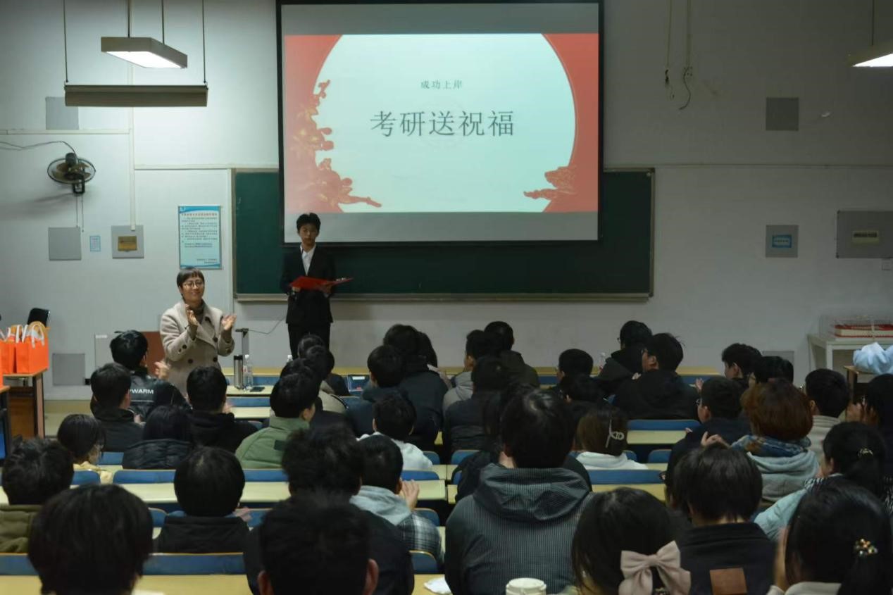 活动最后的切蛋糕仪式将现场气氛推向了高潮,精美的蛋糕上写着有关考研加油的话语,象征着对考研学子的美好祝愿。当老师切开蛋糕,甜蜜在空气中弥漫开来,仿佛预示着考研学子即将在考研路上收获成功与喜悦。整个活动充满了积极向上的正能量,展现了学校对考研学子无微不至的关怀与重视,以及学子之间互帮互助、共同进步的深厚情谊。