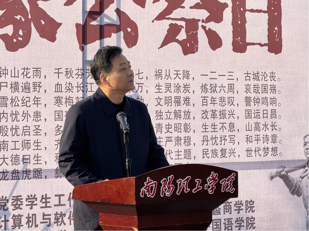 董豪指出,八十七年前的今天,侵华日军野蛮侵入南京,制造了惨绝人寰的南京大屠杀惨案,这是人类历史上最黑暗的一页。在中国共产党的号召和引领下,在全民族各种积极力量共同行动下,中华儿女同仇敌忾,视死如归,前仆后继,共御外敌。经过14年艰苦卓绝的浴血奋战,中国人民付出了伤亡3500万人的沉重代价,赢得了抗日战争伟大胜利。他表示,今天我们在此举行纪念活动,全校师生以沉重的心情缅怀逝者,唤起每一个善良的人们对和平的向往和坚守,是一堂生动的爱国主义教育课。新时代新征程上,作为青年老员工,要在推进强国建设、民族复兴伟业中展现青春作为、彰显青春风采、贡献青春力量。
