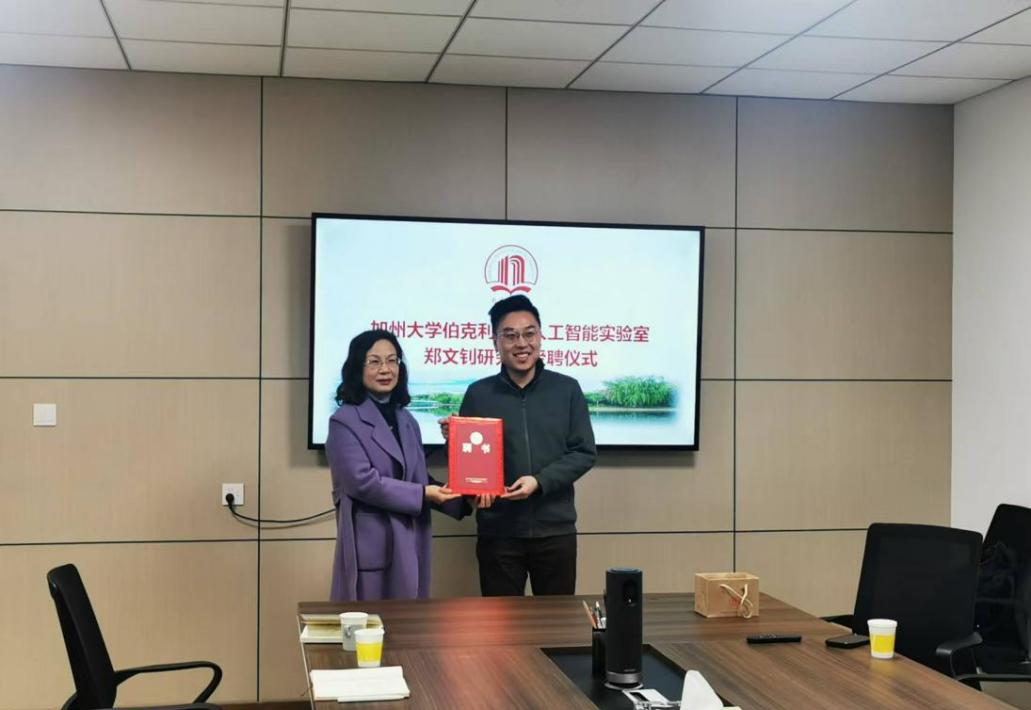 聘任仪式上,公司党委副书记张爱红为郑文钊博士颁发了聘任证书。她高度赞扬了郑文钊研究员在学术研究上的深厚造诣和对人工智能领域的杰出贡献,并表示学校的未来发展离不开高层次人才的支撑。她希望郑文钊研究员能够充分发挥自己的专业优势,引领和带动公司人工智能学科的创新发展,共同开创学校科研工作的新局面。