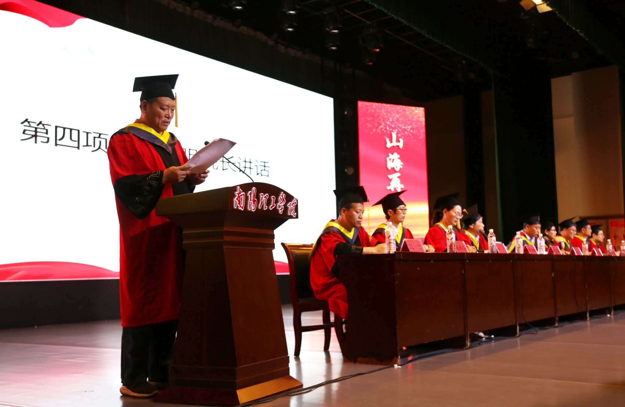 教师代表刘伟为毕业生送上祝福,他希望同学们永葆技术人的赤子之心,修炼协作共赢的软实力,坚守科技向善的初心。愿"厚德、博学、求真、至善"的南工校训和"不甘示弱"的南工精神成为大家闯荡世界的底气。