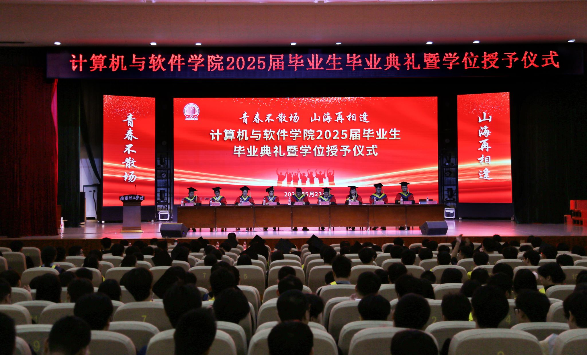 毕业典礼在庄严的国歌声中拉开帷幕,典礼上宣读了2025届省级、校级优秀毕业生表彰名单、毕业生考取研究生名单,学院主要负责人为全体毕业生拨苏正冠、颁发学位证书。
