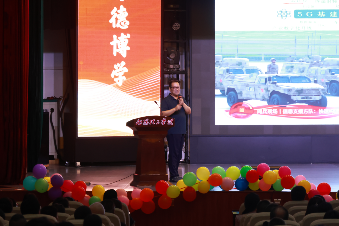 开学典礼在庄严的国歌声中拉开帷幕。公司党委书记赵东江致欢迎辞,他代表学院全体教职员工向2025级新生及家长表示热烈欢迎和诚挚问候。他回顾了学院发展历程,详细介绍了学院近几年实施的南工码农 “百千万” 成长工程,在平台搭建、目标驱动、代码赋能等方面,持续提高人才培养质量。同时,赵书记对新生提出 “爱国、勤学、改变” 三点希望:厚植家国情怀,将个人理想融入党和国家事业;珍惜大学时光,自主学习、知行合一,以张云聪、苗栋栋等优秀员工为榜样;勇于自我革新,摒弃“60分万岁”的错误观念,以高学分绩点锤炼学习能力与职业素养,为未来发展积蓄动能。