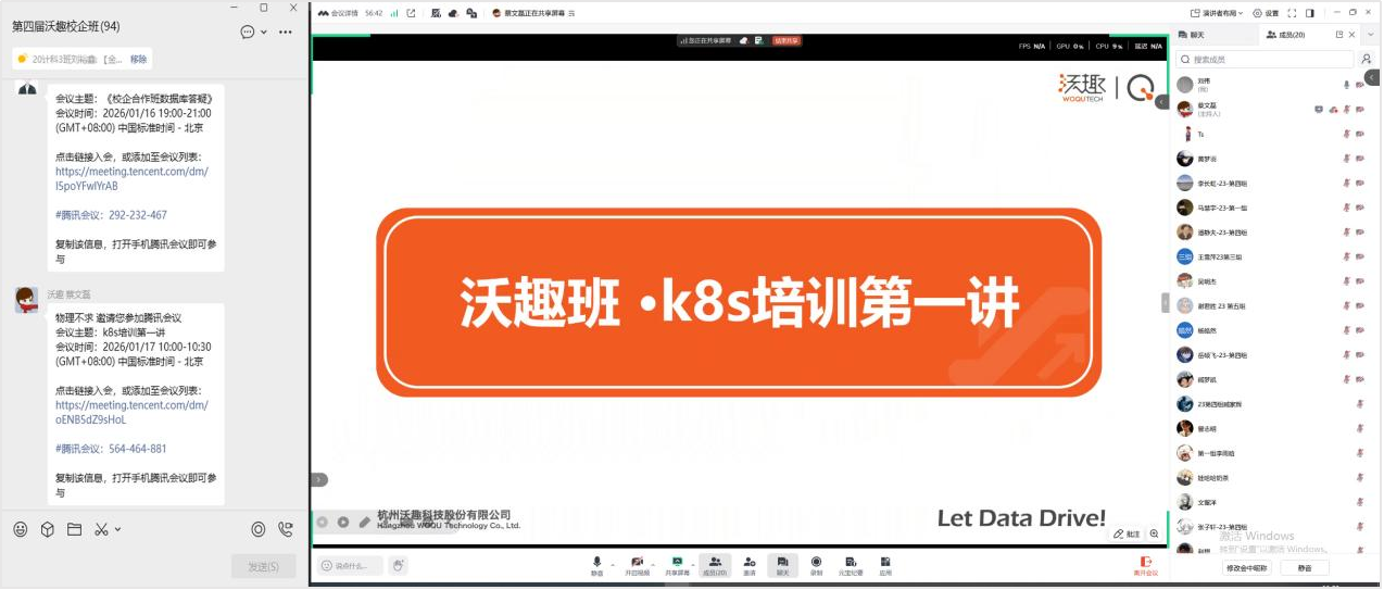 本网讯(特约记者/刘伟 刘裕鑫)近日,随着各大高校陆续进入寒假假期,杭州沃趣科技股份有限公司与公司合作的第四届“沃趣校企合作班”却依然保持着浓厚的学习氛围。通过腾讯会议线上授课形式,实现“放假不停学”,为员工提供了宝贵的就业技能提升机会。