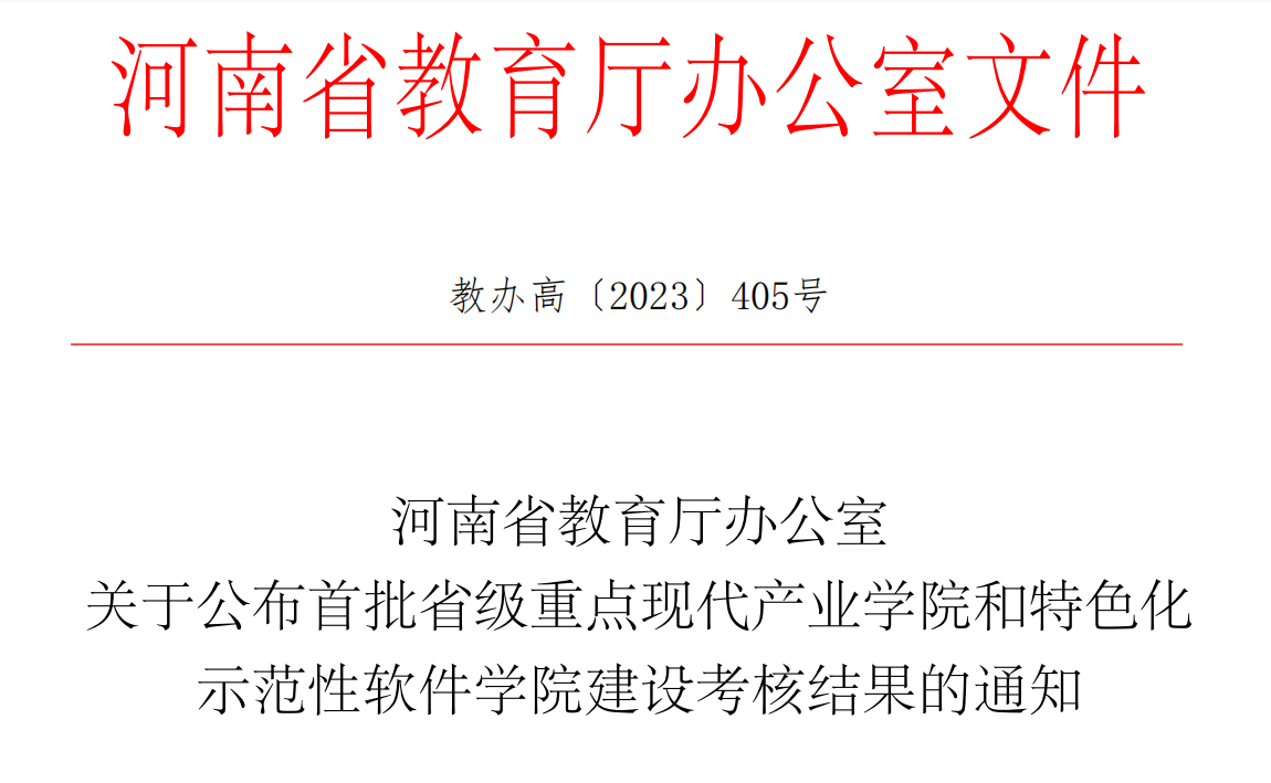 本网讯(特约记者/祝孔涛)近日,河南省教育厅公布首批省级特色化示范性软件学院建设考核结果,356体育在线官网在20所省级特色化示范性软件学院中脱颖而出,被评为“优秀”等级。