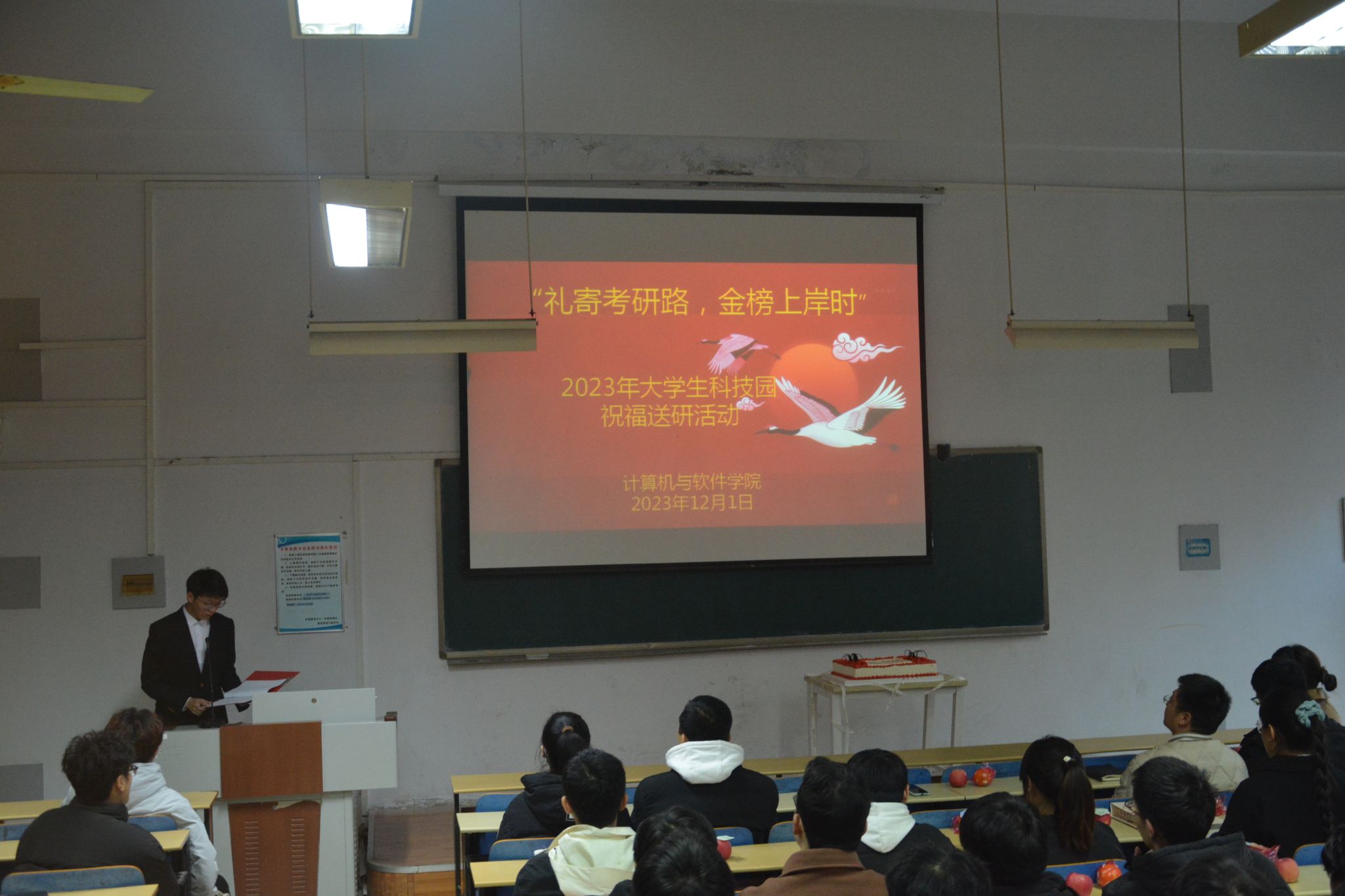 本网讯(特约记者/陈可)12月1日下午,356体育在线官网在14号教学楼举办以“礼寄考研路,金榜上岸时”为主题的2023年老员工科技园祝福送研活动,学院部分领导、老师代表莅临活动现场,为考研同学们送上祝福。