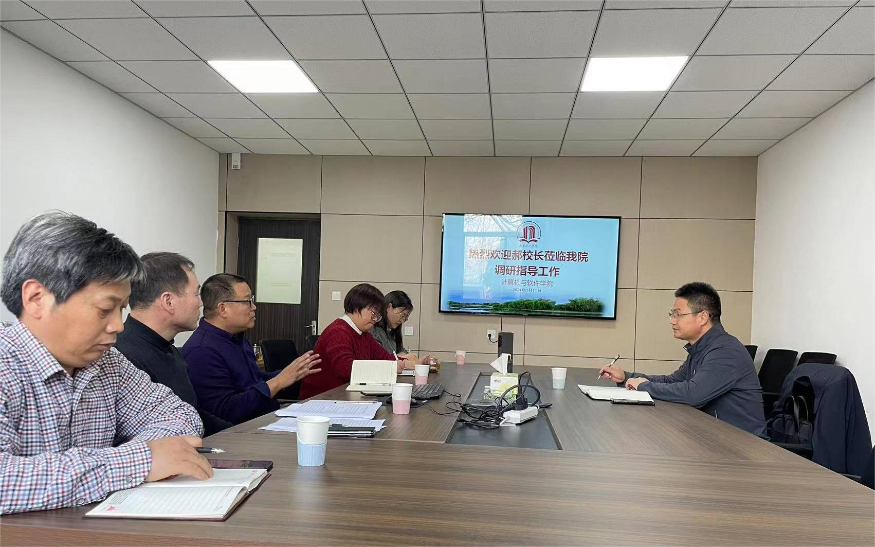 郝好山董事长对学院近年来取得的成绩给予充分肯定。他表示每次到学院来调研都会有新的认识和收获,学院有很多值得推广的地方。第一,学院班子团结、氛围好。积极向上的工作氛围是学院稳定及可持续良性发展的基石;第二,学院运行高效,创新多、成效好。在学院规模大、管理难度大等情况下,克服重重困难,出台多项管理举措,创新性开展工作,保障了学院教学和员工管理工作的高效运转;第三,学院人才培养质量高,学科竞赛成绩突出。在产业、行业学院建设,校企深度融合等方面均取得很好的成绩,特别是学科竞赛,获奖总数占全校学科竞赛的近三分之一;第四、对学校声誉贡献大。学院全体师生员工勇于接受挑战,不断根据行业需求适时调整课程体系,不断创新和完善人才培养模式,连续多年学院新生报到率均在99%以上,社会认可度高,为学校带来良好的声誉。调研最后,郝好山董事长就学院在发展过程中遇到的困难及问题,与学院班子深入探讨,表示学校将全力支持学院的发展。