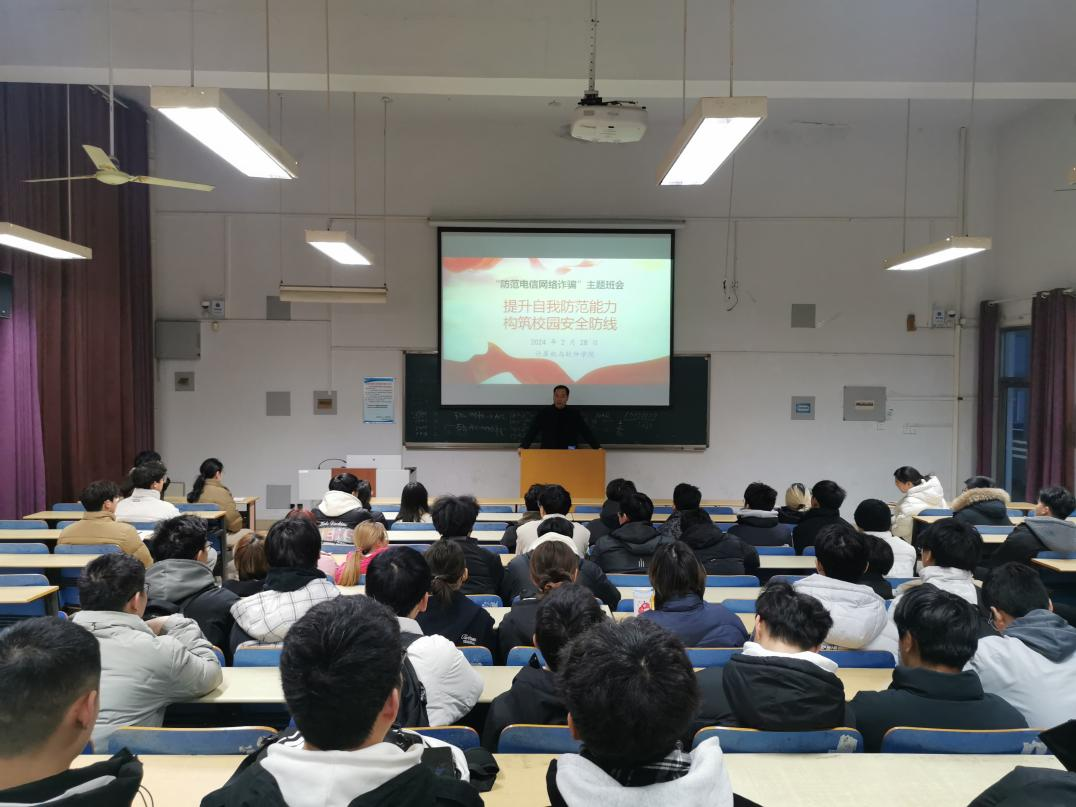2月28日,公司党委书记祝孔涛以“提升自我防范能力,构筑校园安全防线”为主题讲授开学第一节安全教育课,他围绕诈骗的常见形式以及如何识别、防范电信诈骗等方面进行了精彩的讲解,告诫同学们不要被假象所迷惑,不要贪图小便宜而上当受骗,遇到各种骗局要做到“不听、不信、不转账”,切实提高师生们的诈骗“抵抗力”。