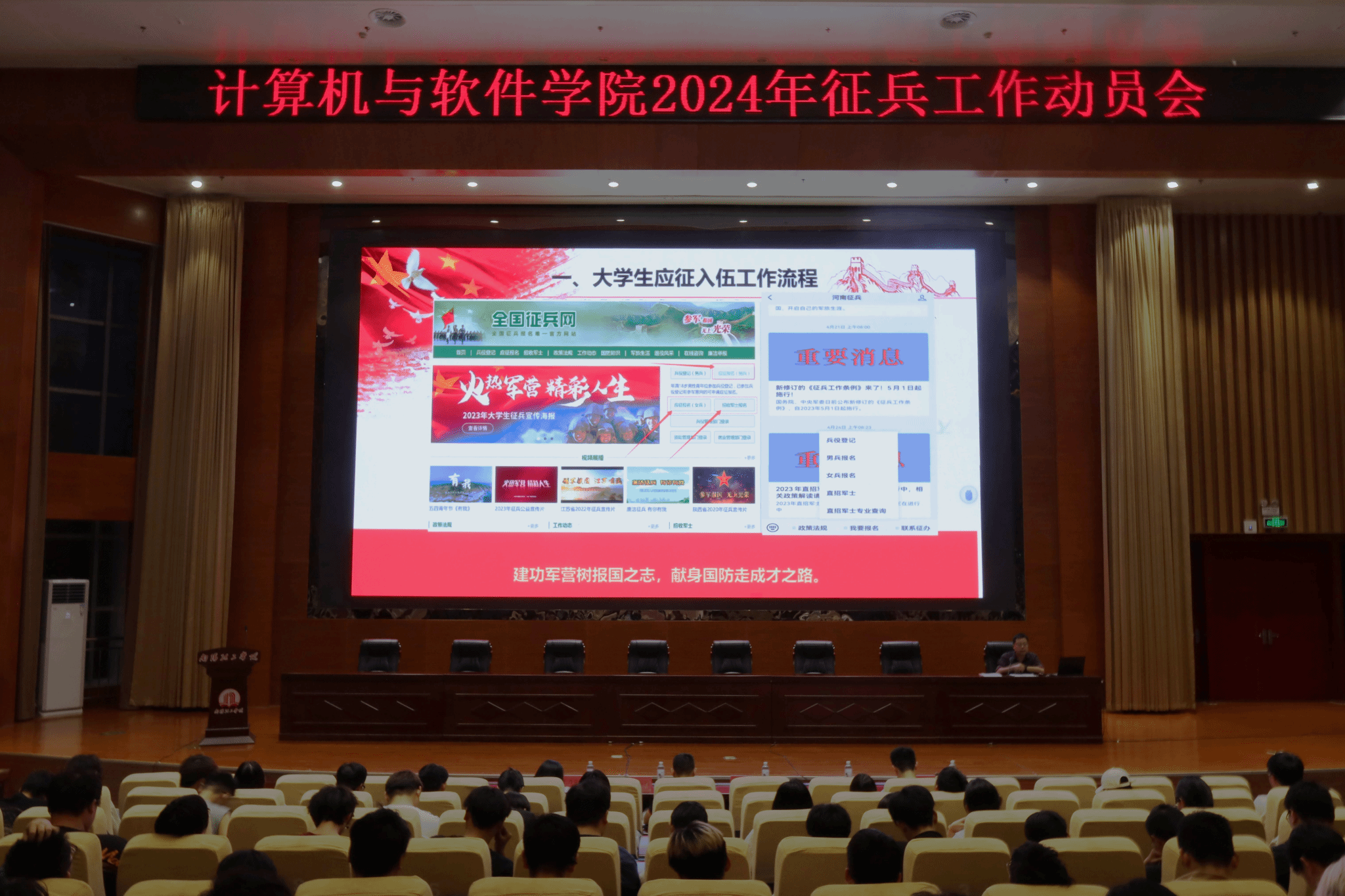 此次征兵工作动员会,旨在激发同学们投身军营的热情和信心,鼓励更多的同学尤其是毕业生积极报名参军入伍,也是学院把握关键节点、精准高效动员的关键举措。(校对/闫恒瑜 审核/赵东江)