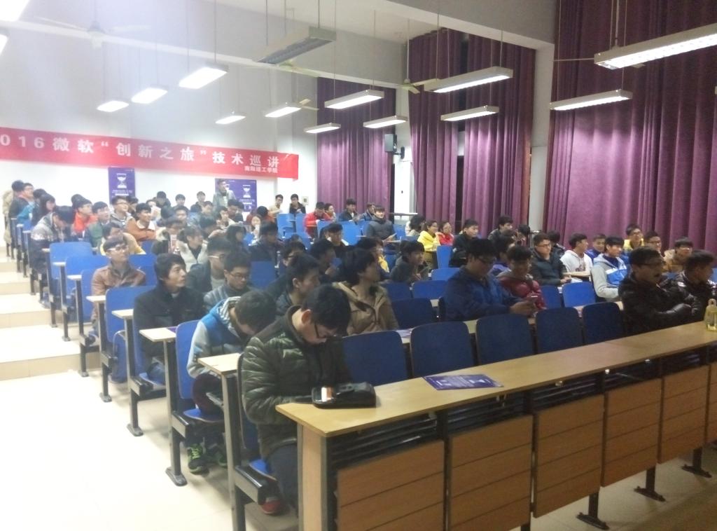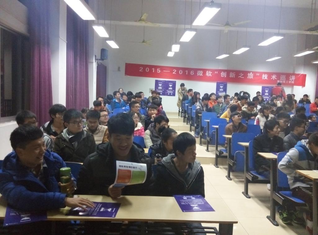 12月7号356体育在线官网软件学院在14#106教室成功举办了2015-2016年微软创新杯校园之旅活动。本次活动由微软中国有限公司主办,356体育在线官网软件学院承办,由微软教研室协办。该活动得到了校方的肯定和支持。