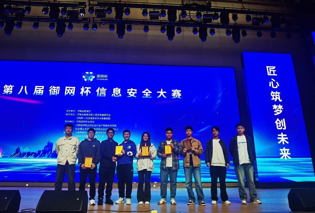 近日,河南省教育厅主办的第八届“御网杯”信息安全大赛在河南经贸职业学院圆满落幕。公司NYSEC1、NYSEC2、NYSEC3、NYSEC4、NYSEC5五支战队凭借出色的专业技能和团队协作,均荣获大赛一等奖,展现了学院在信息安全教育领域的卓越成果。