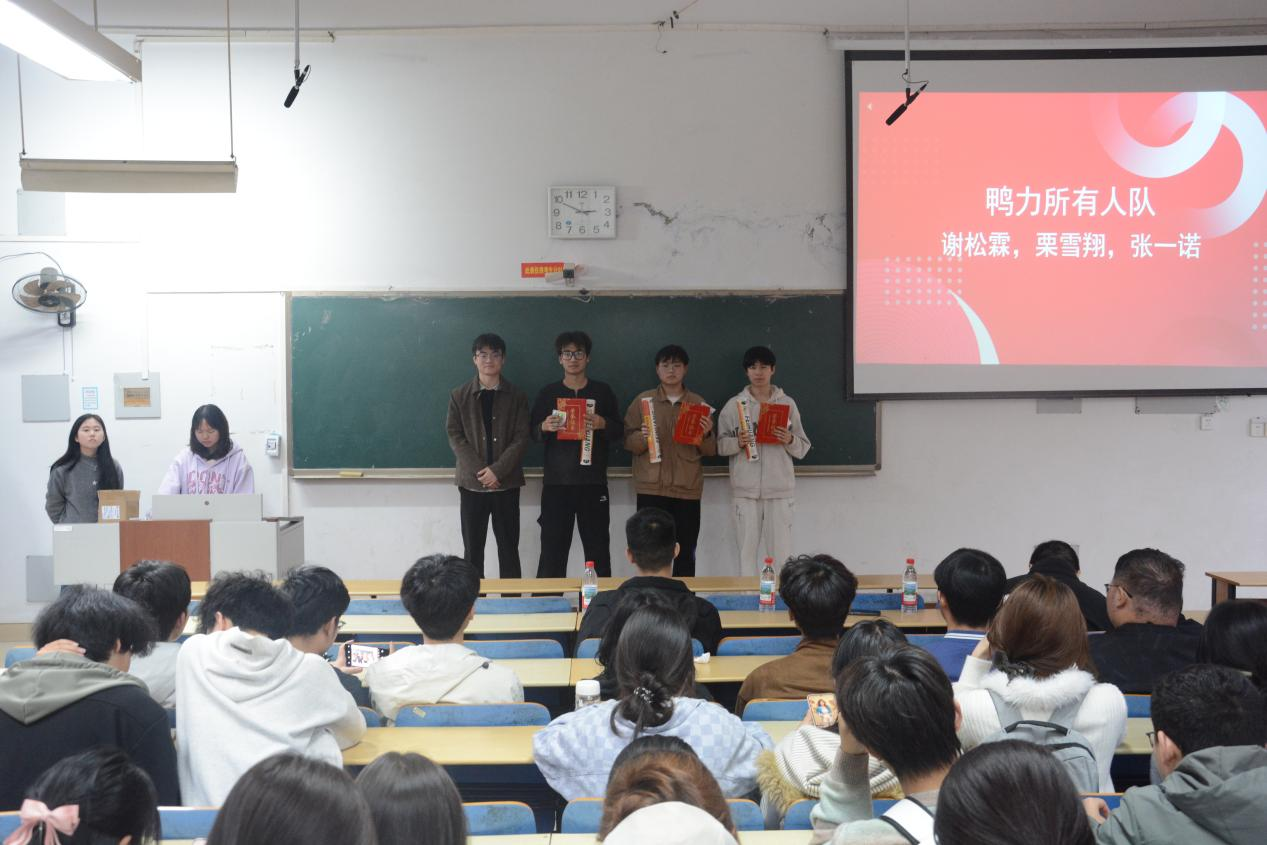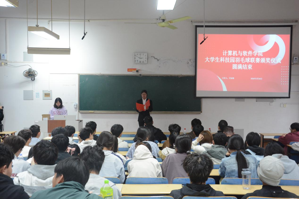 本次羽毛球比赛颁奖仪式于3月30日晚间隆重举行,主持人司如锦开场回溯赛事全程,细数赛场上的精彩瞬间与动人时刻。仪式先邀请工作人员代表赵昱博上台发言,分享幕后筹备细节与热爱;随后优秀裁判代表符召炫讲述执裁感悟,彰显对规则的坚守与公平的敬畏。进入激动人心的颁奖环节,王嘉树、管路畅、徐海航老师依次为季军、亚军、冠军队伍颁发荣誉证书及奖品并合影留念,定格荣耀时刻。获奖运动员代表谢松霖上台分享,动情讲述备赛与参赛的汗水与收获,传递拼搏奋进、团结协作的运动精神,现场氛围热烈温馨。
