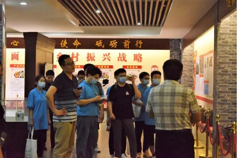 社会实践队员在村党委书记王建伟带领下参观了子育村脱贫攻坚博物馆,了解了子育村脱贫致富的巨大变化;举行356体育在线官网暑期社会实践基地挂牌仪式。随后,他又为同学们上了一节“初心讲堂”课,以生动案例讲述脱贫攻坚路上的感人故事。他说,作为一名党员干部要为老百姓实心实意干事,全心全意服务,要不忘入党初心,要让群众相信党跟党走,带领群众脱贫致富奔小康。