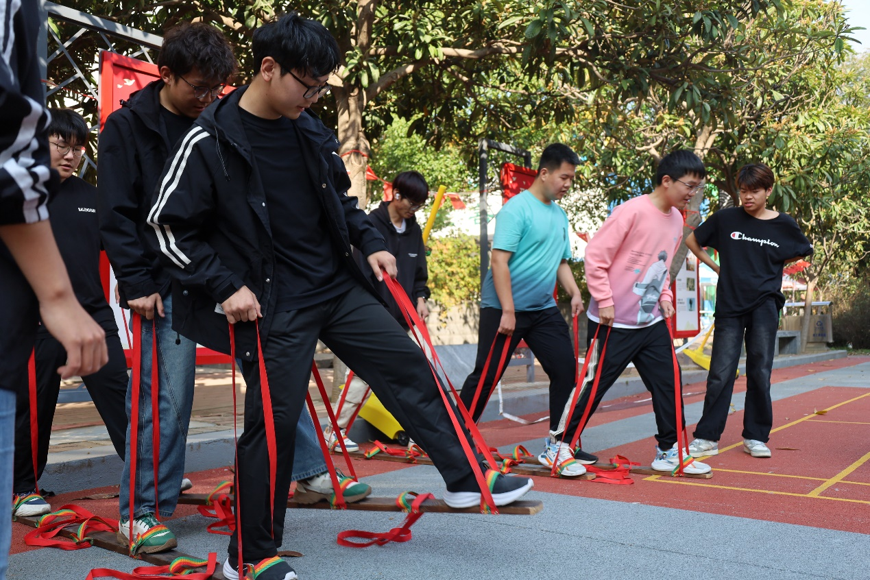 活动当天,党建广场上充满了欢声笑语。本次运动会主要以趣味游戏为主,共设置了抱球行进、巨人脚步竞速、不倒森林等六个富有创意和挑战性的小游戏。每个游戏都精心设计,旨在激发同学们的参与热情,同时锻炼他们的团队协作能力、反应能力和心理素质。