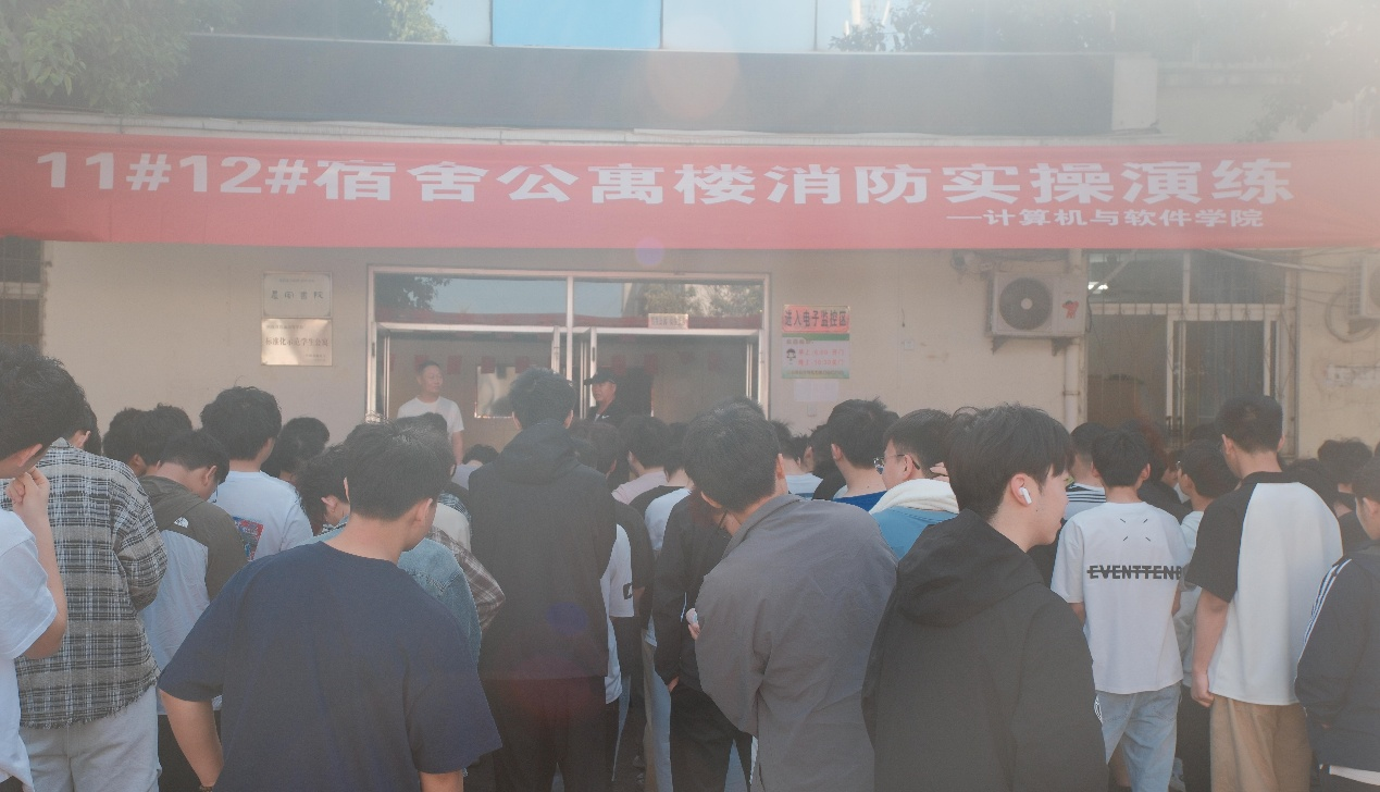 演练正式启动,两栋公寓楼内模拟突发"火情",浓烟触发警报系统后,公寓管理员迅速启动应急响应机制。员工在宿管老师的引导下,用湿毛巾捂住口鼻,沿消防通道快速有序撤离至指定安全区域。整个过程耗时不到四分钟,全程无拥挤、踩踏现象。