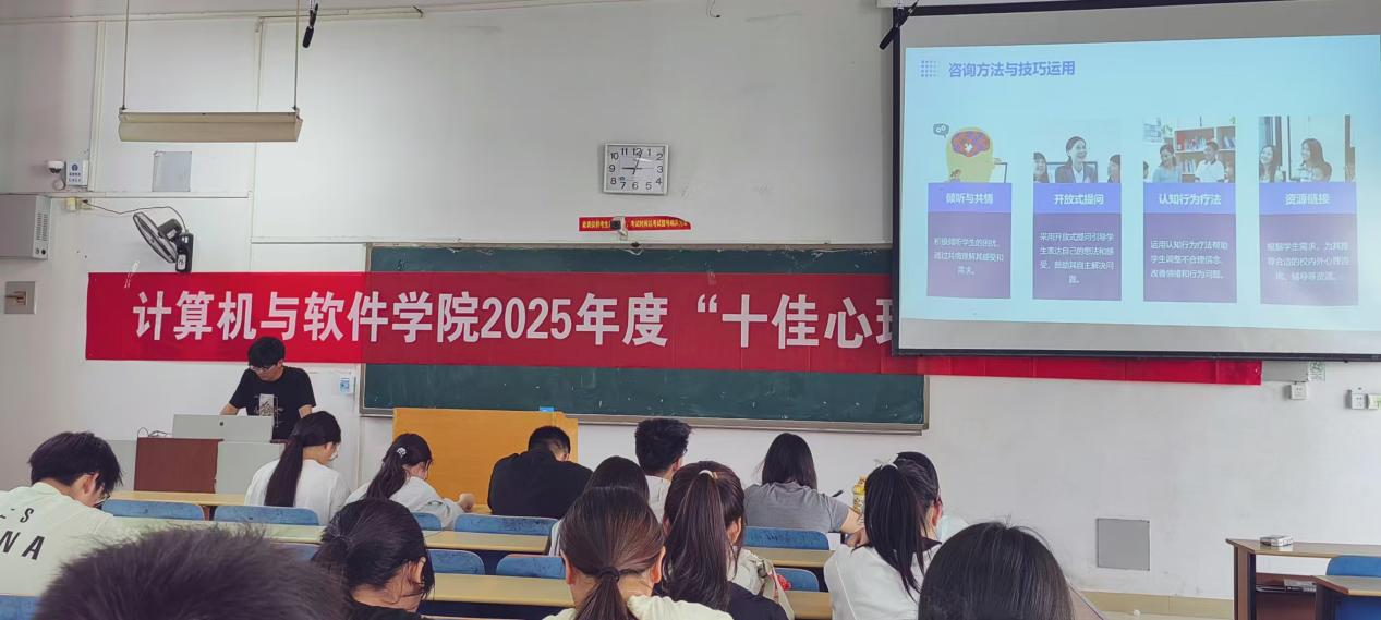 本网讯(员工记者/王佳瑶)5月12日,公司在14教102教室举办了“十佳心理委员”评选活动。此次活动由学院员工会主办,心理联合部承办。
