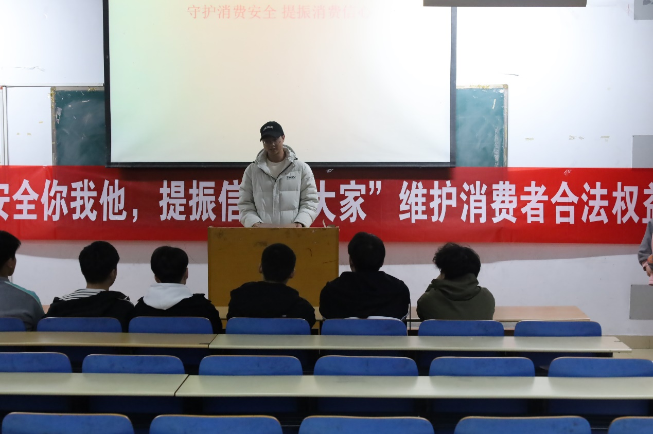 3月12日,学院在14号教学楼开展线下主题班会,向同学们介绍几种常见的侵犯消费者权益的行为及危害,深化大家对消费公平的理解,并且通过解读《消费者权益保护法》,让同学们正确的认识到该如何维护自身的合法权益。